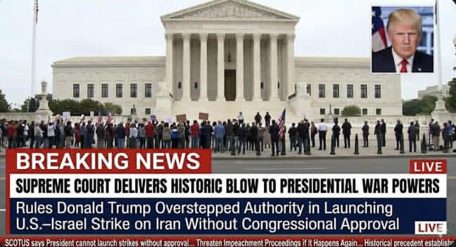 JUST IN; Supreme Court Delivers Historic Blow to Presidential War Powers, Rules Donald Trump Overstepped Authority in Launching U.S.–Israel Strike on Iran Without Congressional Approval, Threaten Impeachment Proceedings if It Happens Again