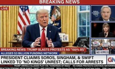 JUST IN; Donald Trump Declares ‘No Kings’ Protests “100% BS,” Alleges $3 Billion Funding Network Led by George Soros, Neville Singham, and Taylor Swift Through Hundreds of NGOs and Calling for Their Immediate Arrest
