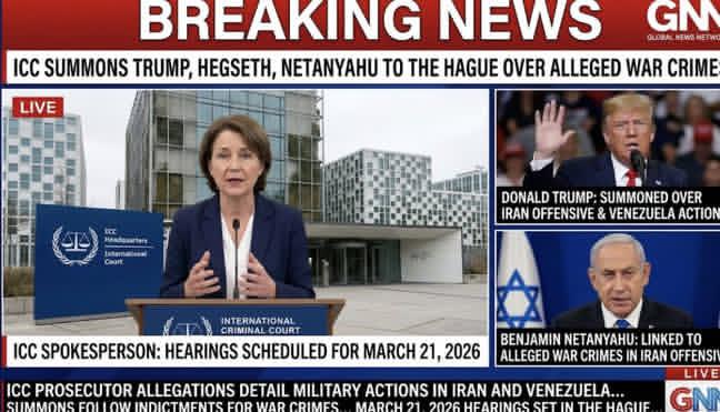 Reports are circulating online claiming that the International Criminal Court has summoned Donald Trump, Pete Hegseth, and Benjamin Netanyahu to appear at a March 21, 2026 hearing over alleged war crimes linked to Iran and Venezuela.